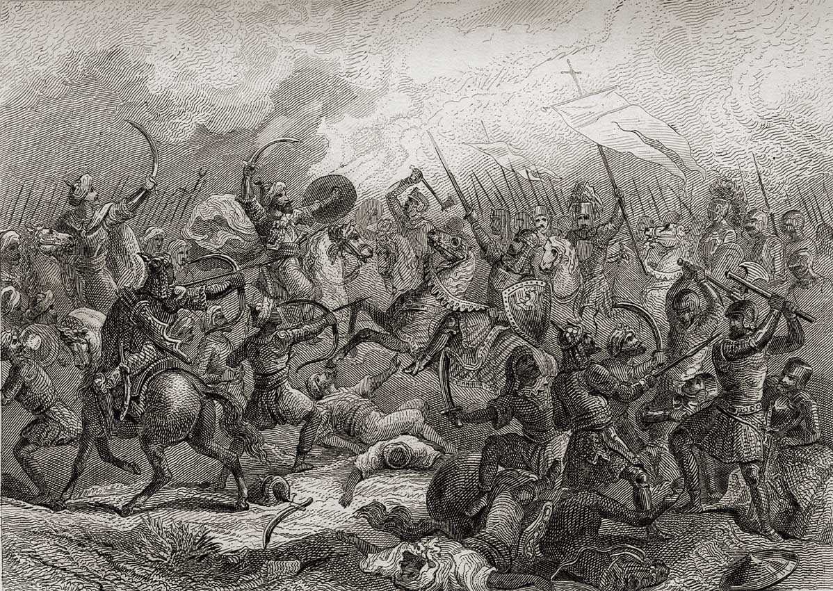 A 19th-century engraving of the Battle of Sagrajas (1086) between the Almoravid army led by Yusuf ibn Tashfin and the Christian army led by the Castilian King Alfonso VI. (Getty Images)