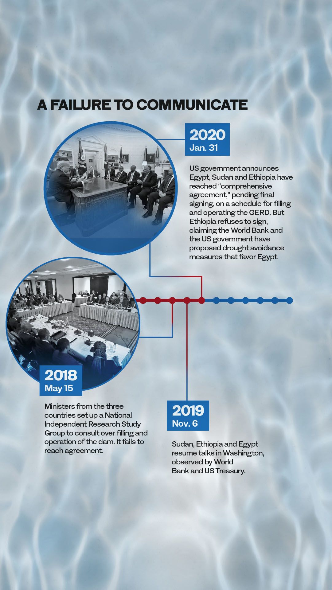 Over the past decade, despite numerous attempts at negotiation and mediation, all efforts to reach an agreement between the three countries on the crucial issues of how the dam should be filled and operated, especially during periods of drought, have failed.