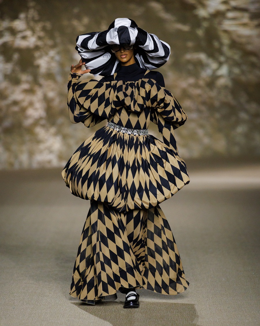 The Saudi label — founded by sisters Alia and Abeer Oraif — presented a line titled “A Ticket to the Theater,” marked by suitably head-turning prints and silhouettes. Inspired by “the transformative magic of performance,” according to show notes, the collection unfolded with A-line capes, poufy silhouettes, bold cuts, and intricate embellishments.