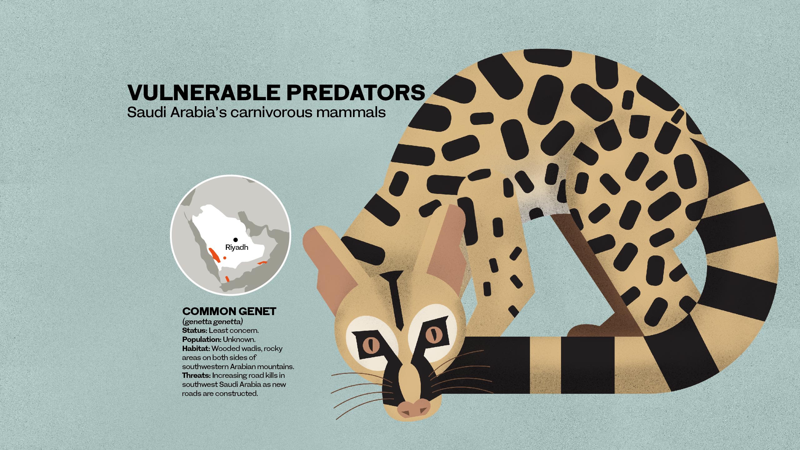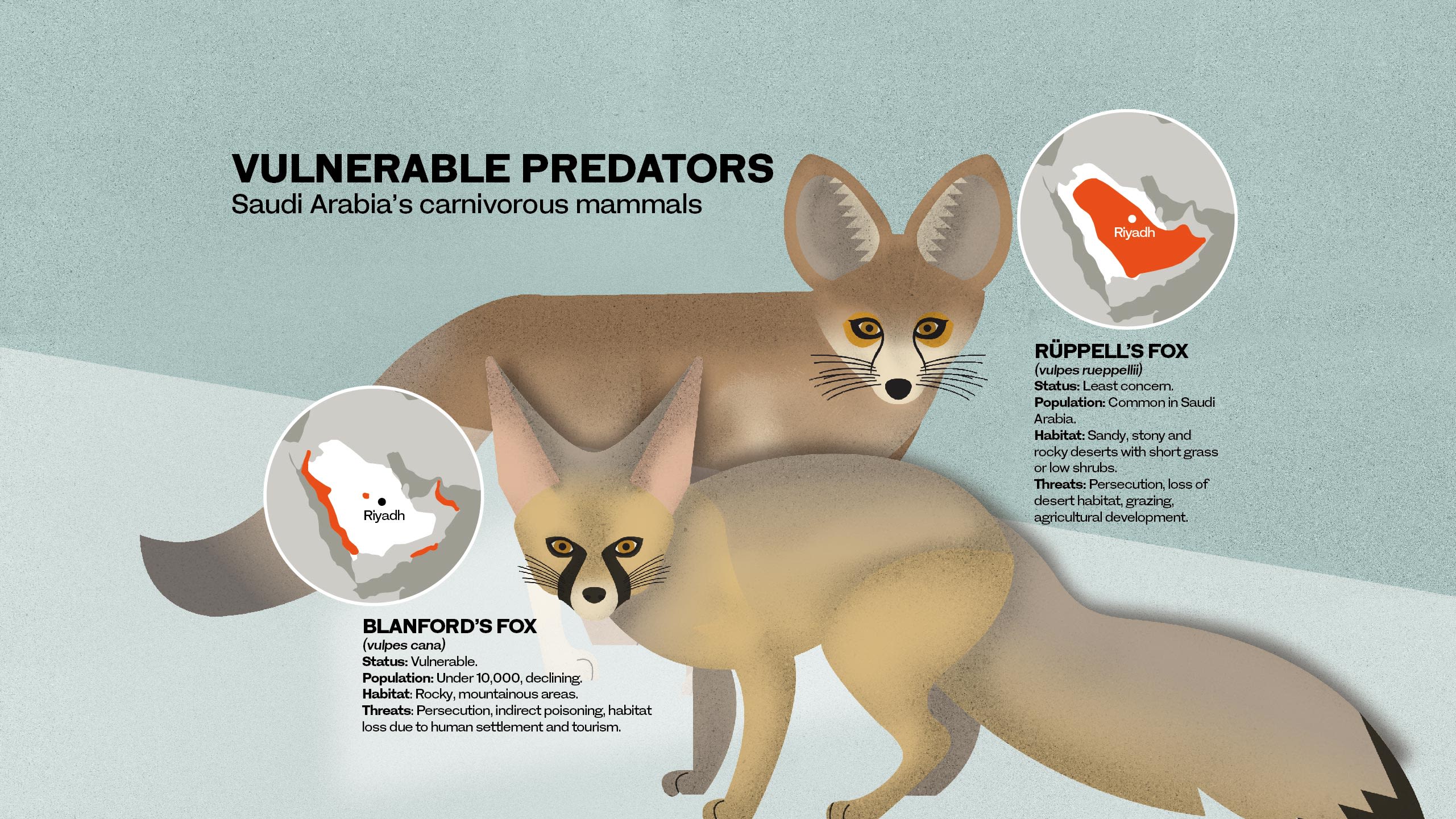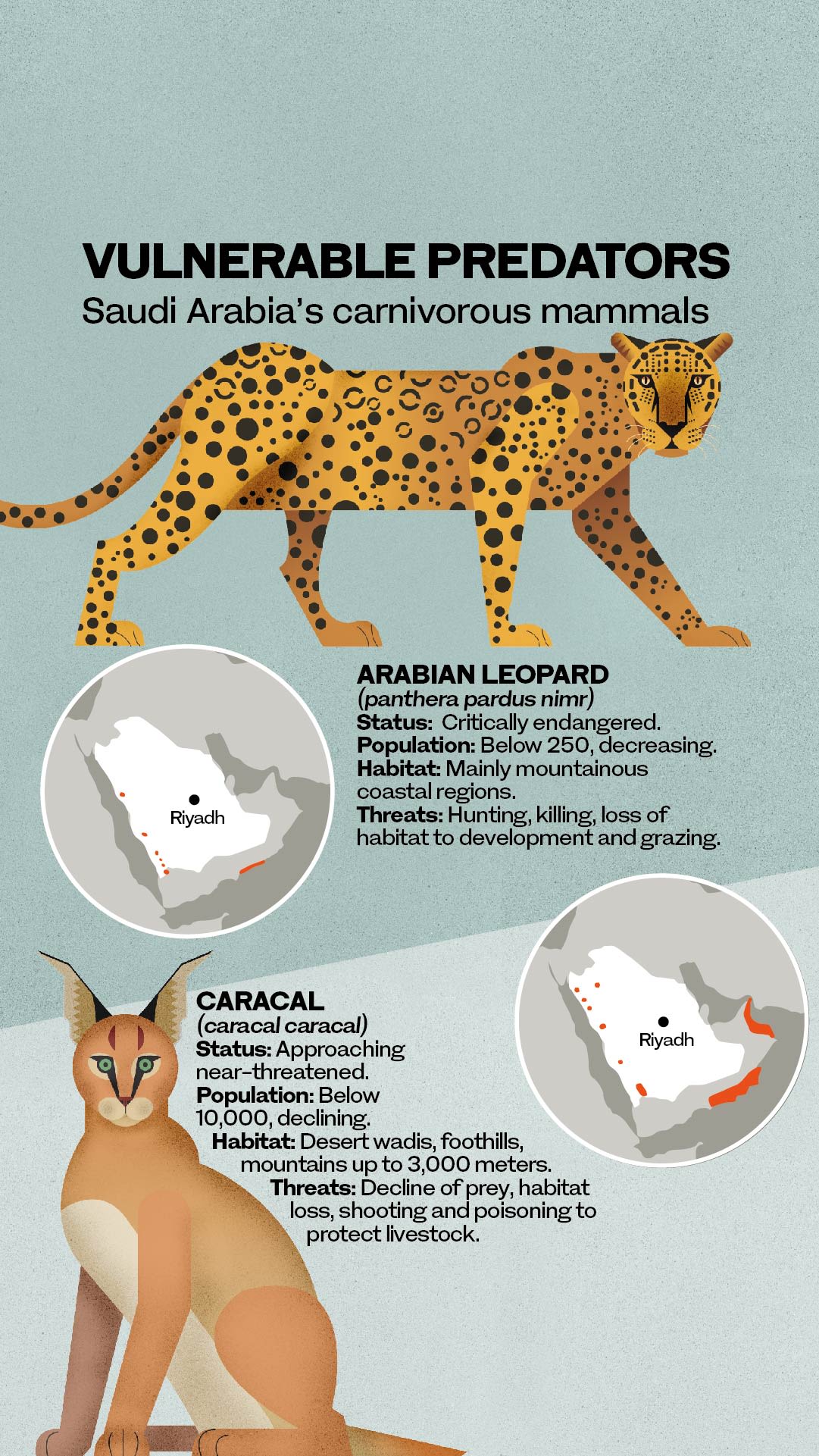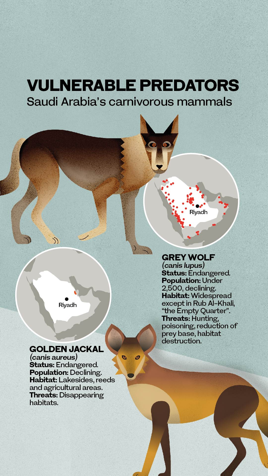 Other carnivorous mammals in Saudi Arabia, including the caracal, sand cat and golden jackal, are also rated as vulnerable to one degree or another, but are expected to benefit from the renewed focus on protecting landscapes and crucial habitats.