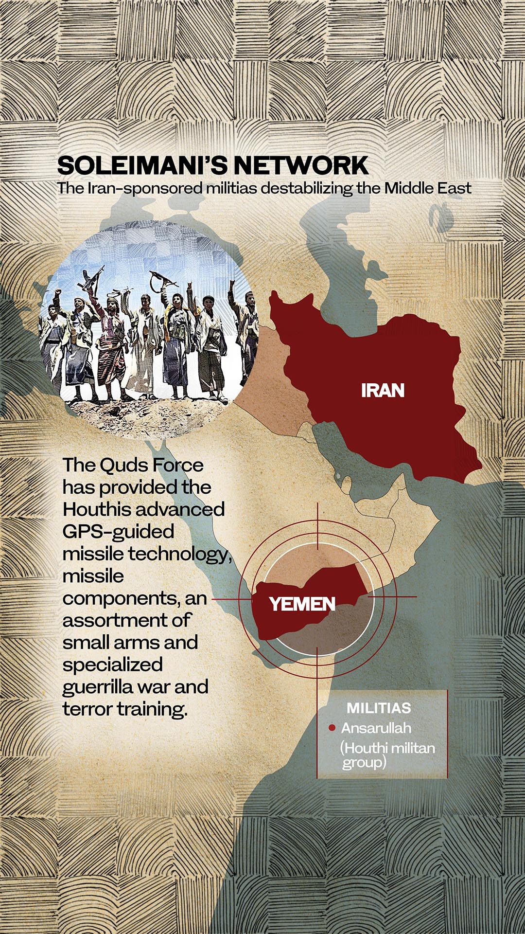 Opportunity presented itself to Soleimani in Yemen, where in 2011 he was in a position to exploit the Shiite Houthi revolution, which in 2015 would draw in a coalition of Arab states led by Saudi Arabia.