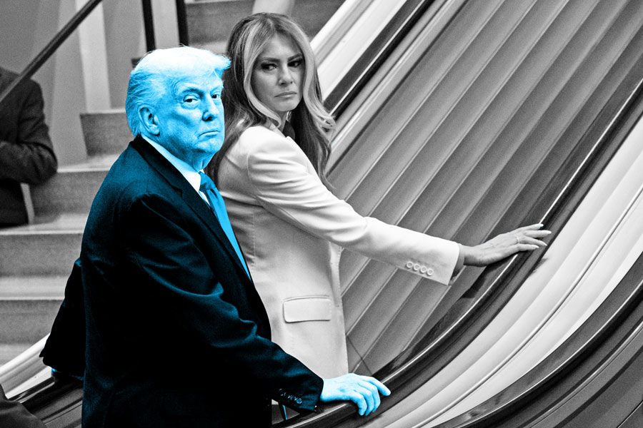 President Trump, with his wife Melania, was not amused when a UN escalator failed him. (Getty)