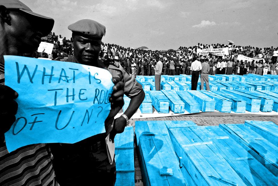 Protests against UN inaction in Burundi after the massacre of Tutsi refugees by Hutu rebels in August 2004. (Getty)