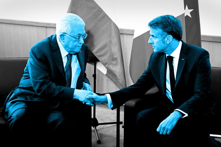 French President Emmanuel Macron and Palestinian President Mahmoud Abbas at the 79th General Assembly in 2024. This year Abbas was refused a visa by the Trump administration. (Getty)