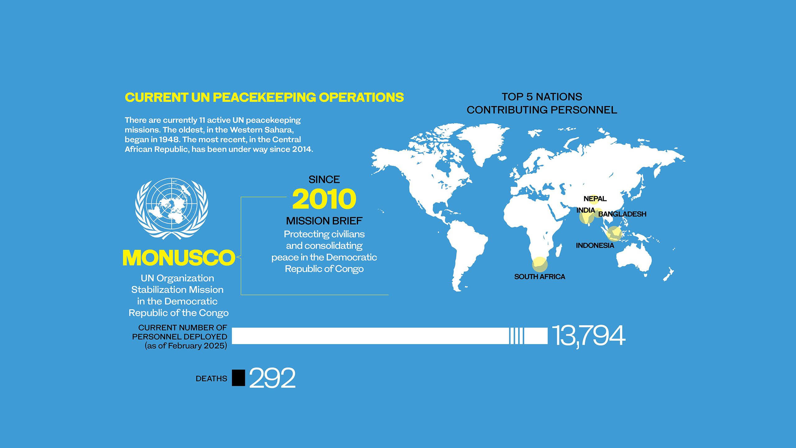 The UN currently has 11 peacekeeping operations in progress, one of which, in Jerusalem, has been running for an astonishing 77 years. Introduced in May 1948, the UN Truce Supervision Organization was the first UN peacekeeping operation. Its military observers have remained in the Middle East ever since, monitoring ceasefires and supervising armistice agreements.