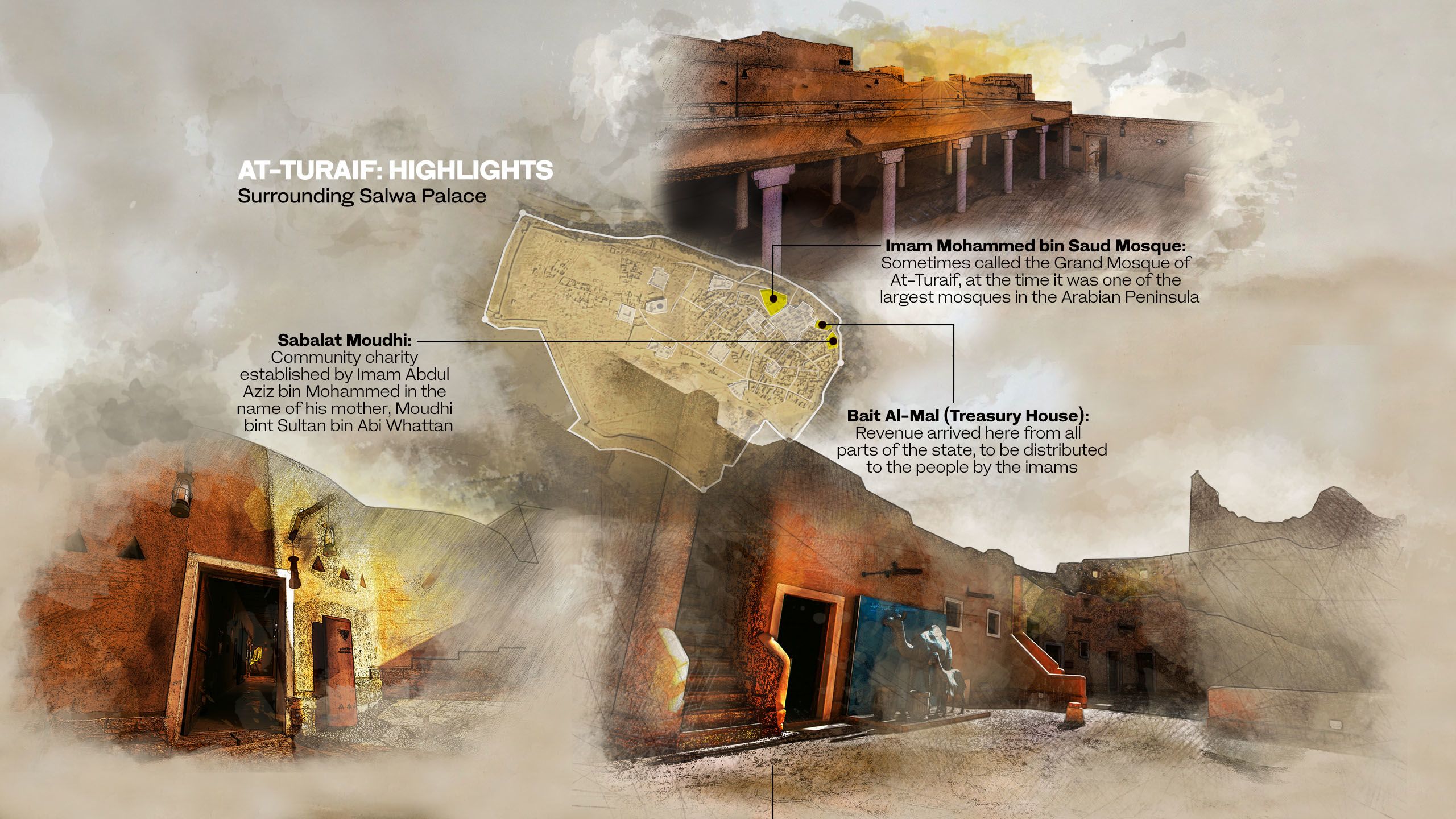 At-Turaif, added Al-Honaihen, is also home to Imam Mohammed bin Saud’s mosque. “The imams of the First Saudi State used to pray there, and it was the scene of many political incidents during that period.” It was also one of the most important mosques in the region, and at one point “the number of worshipers who used to go there exceeded 3,000, which shows how large the First Saudi State was during its glory days.”