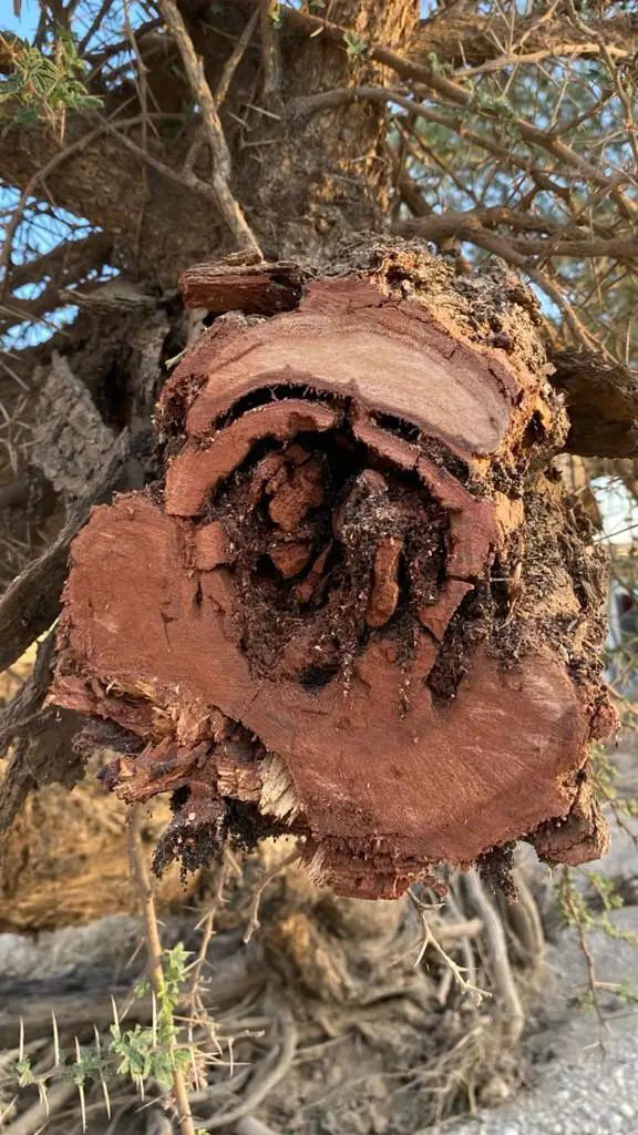 “The acacia tree grows naturally in the desert. It is a desert umbrella tree and is divided into two types; the Iraqi acacia and the Najdi acacia, and reaches around 55 types in total,” Alouni said.